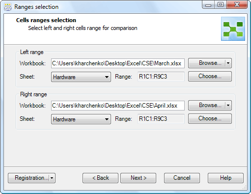 Снимки экрана Compare Spreadsheets for Excel