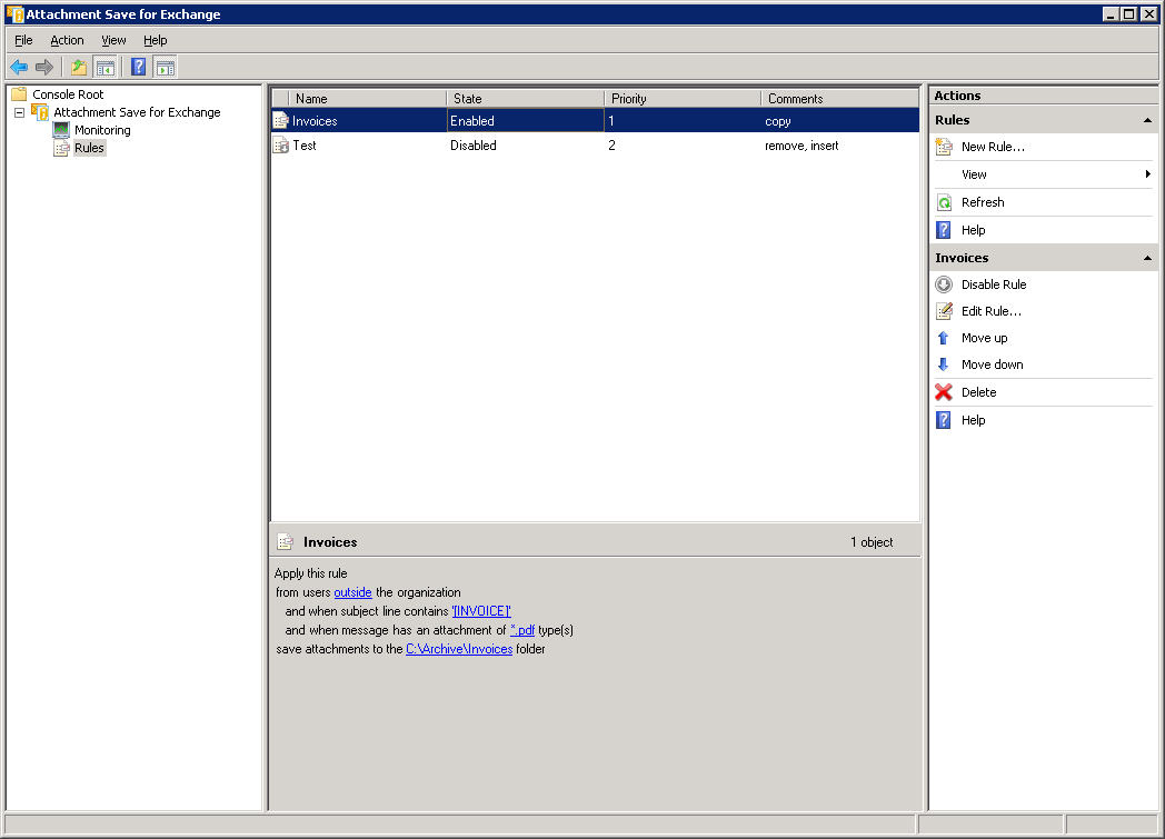 Правила Attachment Save for Exchange |